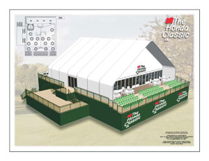 - Multiple color televisions with in-tent coverage of the Honda Classic
