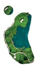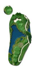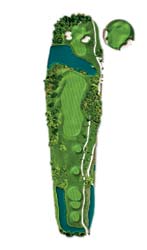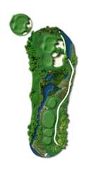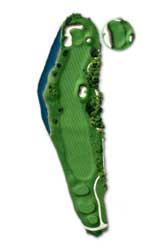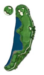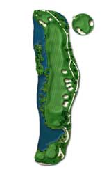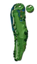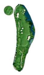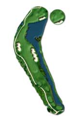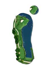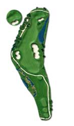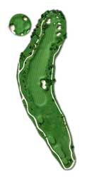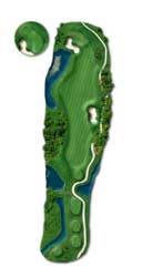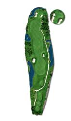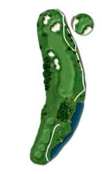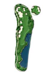 This par-4 has been lengthened to 450 yards and offers plenty of trouble on the second shot as water runs from just beyond the landing area all the way up to the green. The green itself runs diagonally left to right with a bunker behind the green. Because of the water fronting the green, any approach in that back bunker leaves a dangerous shot back to the pin. This is probably one of the strongest holes on the golf course.